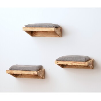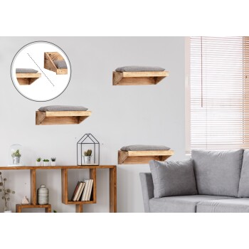 Aus geflammten Echtholz gefertigt, ist diese Liegemulde nicht nur optisch ein Hingucker sondern auch besonders stabil. Durch die Wandmontage benötigen Sie in Ihrem Wohnraum keinen zusätzlichen Stellplatz. Diese Liegefläche ist ein idealer Rückzugsort der individuell angebracht werden kann und durch das weiche Kissen zum Entspannen einlädt. Das benötigte Montagematerial ist im Lieferumfang enthalten. Die Befestigung ist wahlweise als Mulde oder Liegeplatte möglich. Maße: 28x40x15cm Material: Geflammtes Echtholz, Kissenfüllung: Vlies (100 % Polyester), Kissenbezug: 100 % Polyester