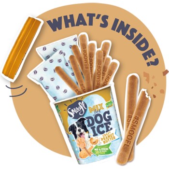 Verwöhne deinen pelzigen Freund mit Smoofl Mix für Hundeeis.Das Smoofl Hundeeis ist sehr einfach zuzubereiten und in nur 60 Sekunden fertig. Eine Packung der Mischung enthält 10 essbare Sticks für deinen vierbeinigen Freund. Ein gesunder Snack, der auf der Zunge zergeht, aber nicht auf dem Boden! Mit den neuen essbaren Eisstielen kann dein Liebling jedes Stück Smoofl Ice Treat genießen. Kein Abfall, nur Smoofl! Die Ice Treats sind zu 100% für deinen Hund gemacht und sind laktose-, getreide- und fettfrei, so dass jeder Hund Smoofl genießen kann.