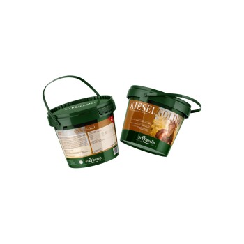 Kieselgold von St. Hippolyt enthält als Hauptbestandteil Kieselgur, ein maritimes urzeitliches Naturprodukt das über Millionen von Jahren entstand. Eingesetzt wird es als natürliche Siliziumquelle. Silizium ist ein wesentlicher Baustein von Bindegewebe, Sehnen, Knochen und Hufhorn. Durch die große Oberfläche der Kieselgur werden außerdem Schadstoffe aus dem Darm gebunden und ausgeschieden. Zusätzlich sind im Kieselgold Isomaltulose, Kurkuma und hochwertige Pflanzenöle enthalten. Isomaltulose unterstützt als Präbiotikum die Gesunderhaltung des Darmmikrobioms und verbessert Geschmack und Textur. Kurkuma regt den Appetit an, fördert natürlich die Haltbarkeit und verbessert die Absorption und somit die Bioverfügbarkeit der Mikronährstoffe. Die Ölmischung sorgt für einen seidigen Fellglanz.