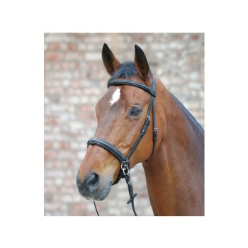 Der Trensenzaum von STAR ist gebisslos und mit Wirkung eines Scawbrig (Wirkung über die Kinnlade). Am Nasen- und Genickriemen ist die Trense mit einer weichen Polsterung für ein angenehmes Tragegefühl ausgestattet. Dieser Zaum ist eine gute Abwechslung für Pferde, die bereits gut ausgebildet sind. Die willkommene Abwechslung zum Trensenzaum für gut ausgebildete Pferde.