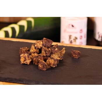 Entdecke die getrockneten Fleischwürfel, perfekt als Snack für zwischendurch! Praktisch und gut verträglich, passen sie in jede Tasche. Egal ob beim Spaziergang oder Training, dein Hund wird sie lieben. Die Würfel sind ideal für Hunde jeden Alters und bieten einen leckeren Belohnungshappen. Die Geschmacksrichtung Pferd kann besonders für ernährungssensible Hunde geeignet sein. Pferdefleisch wird oft für Ausschlussdiäten verwendet. Alternativ gibt es die Variante mit Rind, reich an Proteinen für Fell und Haut. Kauen fördert die Zahngesundheit und trainiert die Muskulatur. Ein gesunder Genuss für deinen Liebling! Vorteile im Überblick Ideal für zwischendurch Gut verträglich Geeignet für alle Hunde Pferdefleisch für sensible Hunde Rind als Proteinquelle Förderung der Zahngesundheit Praktische Würfelgröße Lecker und nahrhaft