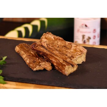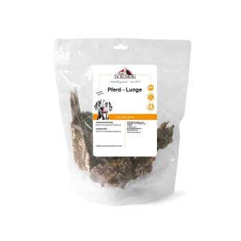 Lecker-leichtes Kauvergnügen für deinen genussverwöhnten Vierbeiner. Schonend luftgetrocknet und liebevoll veredelt, bietet dieser Snack eine naturgesunde Option. Die hypoallergene Pferdeinnerei eignet sich perfekt für tägliche Belohnungen oder als schmackhafte Beschäftigung. Dein Hund wird die großen, eiweißreichen Lungenstücke vom Pferd lieben. Die Pferdelunge besteht zu 100 % aus natürlichem Singleprotein. Sie ist ideal für allergische Hunde und Vierbeiner mit empfindlichem Magen-Darm-Trakt. Mit einem äußerst geringen Fettanteil ist sie auch während einer Diät geeignet. Belohne deinen Liebling jeden Tag mit diesem mageren und geschmacksintensiven Snack. Ein echtes Highlight für deinen Hund! Vorteile im Überblick Schonend luftgetrocknet Hypoallergene Pferdeinnerei 100 % natürliches Singleprotein Ideal bei Allergien Für sensible Mägen geeignet Äußerst geringer Fettanteil Ein Genuss für deinen Hund Perfekt als tägliche Belohnung