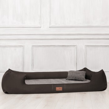 Orthopädisches Hundebett LINUS VISCO PLUS L+ 110 cm Kunstleder Polyester Maximale orthopädische Qualität in grobem Handweb-Stil und eleganten Design angefertigt! ORTHO PLUS - höchste orthopädische Vorbeugung und Entlastung MATERIALMIX aus Polyester mit modernem Handwebcharakter und Kunstleder ECKIGE Form mit umlaufenden Rand - Edles Möbel im eleganten Wohnambiente EYECATCHER Mélange diversen Garne wird das Hundesofa zu einem Hingucker STABIL anschmiegsamer Kuschelrand dank bewährter Schaumflockenfüllung ANTIRUTSCH Unterseite aus einem robusten speziellen Gewebe Auch in Kunstleder verfügbar. Haben Sie Sonderwünsche? Sprechen Sie uns an! LINUS ORTHO PLUS vereint die hochwertigsten Attribute in puncto Gesundheit, Hygiene, Langlebigkeit und Design im Wohnambiente. Maximaler Schlaf- und Gebrauchskomfort für Hund und Mensch! Die Liegefläche der mobil verwendbaren Matratze wartet mit humanmedizinisch bewährtem Viscoschaum auf. Veterinäre empfehlen diese Qualität für Hunde mit Risiken oder Schäden an Knochen, Gelenken oder Wirbelsäule. Für gesunde Hunde Luxus pur, derart entlastet und durchblutet zu schweben. Moderner, mehrfarbiger Stoff mit einem schweren Handwebcharakter umgibt die Matratze. Bei der DUO Variante kommt ein pflegeleichtes Kunstleder zum Einsatz, auch für die anschmiegsame Ablage des Kopfes auf dem weich gepolsterten Rand. LINUS ORTHO PLUS ist in 4 Größen verfügbar: M 80cm, L 100cm, XL 120cm, XXL 150cm. Die Auswahl in 3 klassischen Farbtönen (grau, braun und beige) harmoniert perfekt mit anspruchsvollen Wohnkonzepten. Pflegehinweis Bitte den Bezug nur mit geschlossenen Reißverschlüssen waschen! Waschen mit Feinwaschmittel ohne Weichspüler per Handwäsche oder im Schonwaschgang bei max. 30°C. Bei Maschinenwäsche ein Wäschenetz verwenden. Kunstleder zur Reinigung nass abwischen, waschen ist nicht nötig. Nach dem Waschen sanft in Form ziehen und die Reißverschlüsse immer vorsichtig öffnen und schließen! Nicht trocknergeeignet, nicht bügeln, nicht chloren, nicht bleichen. Versandhinweis Das Produkt wird für den Transport platzsparend zusammengerollt und sehr eng in einem Karton verpackt. Bitte legen Sie die das Hundebett nach dem Auspacken mindestens 12 – 24 Stunden bei Raumtemperatur aus. So gewährleisten Sie, dass sich die Schaum-Silikonflocken und die anderen Materialien aklimatisieren und danach auch wie gewünscht liegen.