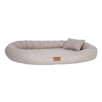 TIFFANY - Orthopädisches Hundebett aus meliertem Bezugsstoff im zeitlosen Design EYECATCHER | Mélange diverser Garne | Feiner Handwebcharakter | Dezente Ziernaht ORTHOPÄDISCH | Herausnehmbare mobile Visco-Matratze für Reisen und Autofahrten ERGONOMISCH | Ovale Form mit abflachendem Rand für einen einfacheren Einstieg. HYGIENISCH | Neueste Webtechnologie - pflegeleichter, abnehmbarer und waschbarer Bezug HOCHWERTIG | Eleganter, hochmoderner und widerstandsfähiger Bezugsstoff FÜR GROßE HUNDE | 3 große Größen (XL 115 cm, XXL 145 cm und XXXL 175 cm). Unser orthopädisches Hundebett TIFFANY Couture punktet wie ihre royale Schwester aus Kunstleder durch ihr modernes Design. In vielen trendigen Farben erhältlich, ist dieses Hundebett ein echter Hingucker in ihrem Wohnzimmer. Dank der weißen Ziernaht wirkt unsere TIFFANY schlanker als sie ist, denn die Schaumflockenfüllung am Rand bietet ihrem Hund zusätzlichen Liegekomfort. Die orthopädische Matratze lässt sich herausnehmen und Sie können den Bezug sogar abnehmen und waschen. Selbstverständlich darf auch hier der abgeflachte Eingang nicht fehlen. Dieses sieht nicht nur elegant aus, ihr Hund hat dadurch auch einen bequemeren Einstieg, sowie mehr Platz sich auszubreiten. Mit TIFFANY ermöglichen Sie ihrem Liebling also einen ebenso exklusiven Schlafplatz, wie mit den anderen Hundebetten dieser Serie. Pflegehinweis Bitte den Bezug nur mit geschlossenen Reißverschlüssen waschen! Waschen mit Feinwaschmittel ohne Weichspüler per Handwäsche oder im Schonwaschgang bei max. 30°C. Bei Maschinenwäsche ein Wäschenetz verwenden Kunstleder zur Reinigung nass abwischen, waschen ist nicht nötig. Nach dem Waschen sanft in Form ziehen und die Reißverschlüsse immer vorsichtig öffnen und schließen! Nicht trocknergeeignet, nicht bügeln, nicht chloren, nicht bleichen. Versandhinweis Das Produkt wird für den Transport platzsparend zusammengerollt und sehr eng in einem Karton verpackt. Bitte legen Sie die das Hundebett nach dem Auspacken mindestens 12 – 24 Stunden bei Raumtemperatur aus. So gewährleisten Sie, dass sich die Schaum-Silikonflocken und die anderen Materialien aklimatisieren und danach auch wie gewünscht liegen.