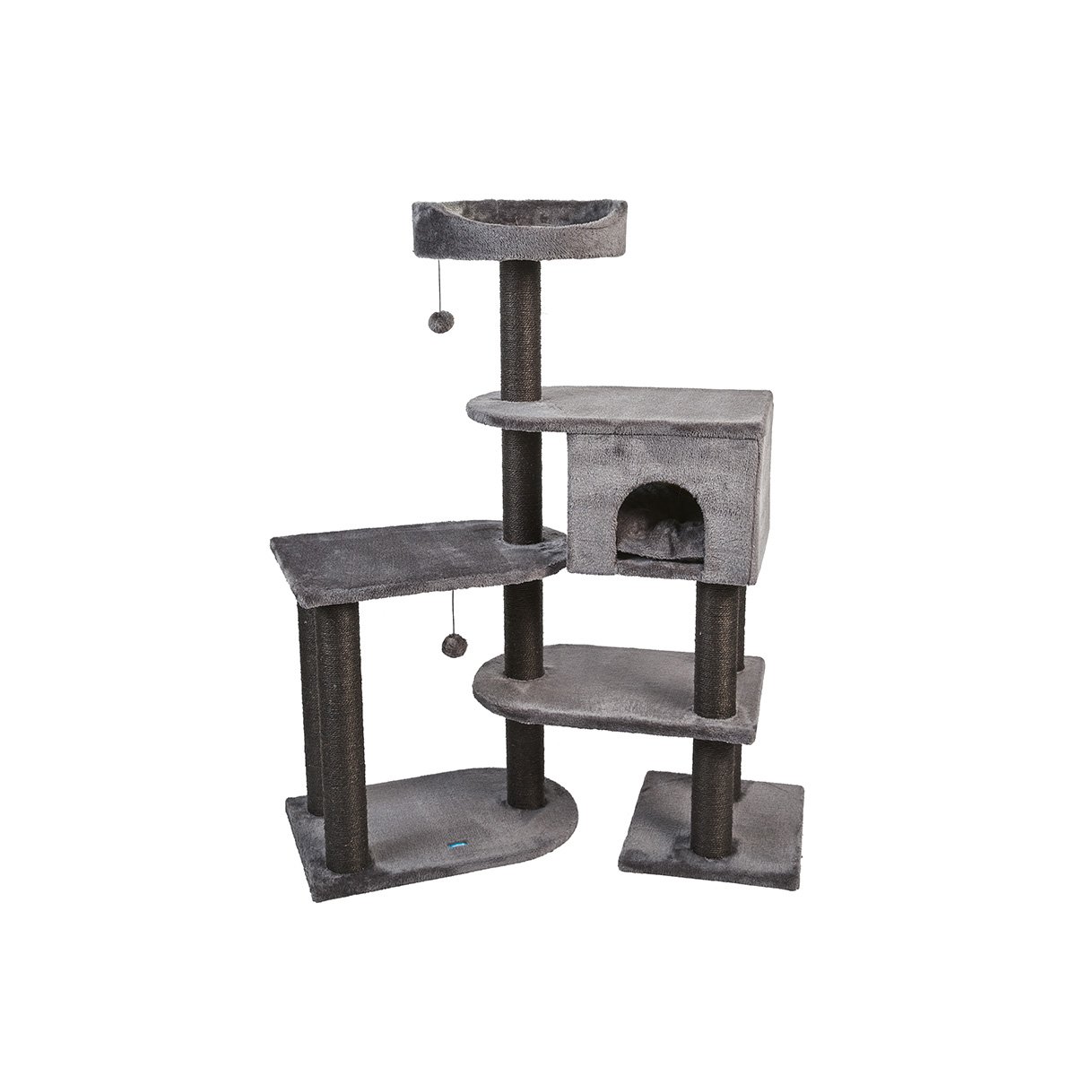 Stylischer, stabiler und variabel aufstellbarer Premium Kratzbaum Mila von ZooRoyal in anthrazit mit 4 Liegeflächen, Höhle und viel Kratzfläche aus natürlichem Sisal.